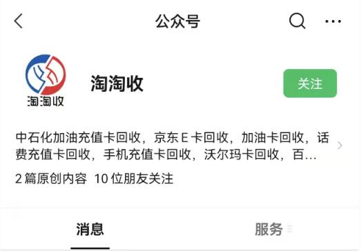 第一步:微信搜索关注公众号“淘淘收”。