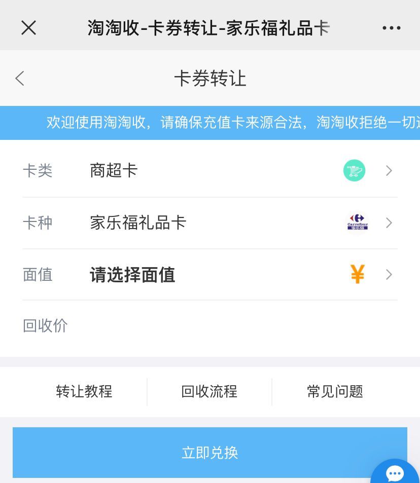 以下就是家乐福礼品卡在淘淘收回收的流程步骤: