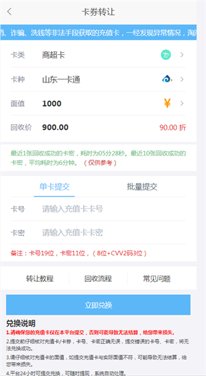 如果你有回收掉这种卡券的想法当然也是可以的,一般来说回收的折扣是88折,在我们专业回收平台淘淘收上面,回收折扣要高达九折哦!大家可以自行对比下,绝对是性价比极高的选择了。