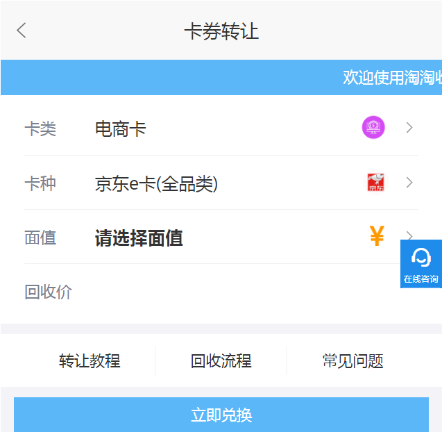 在现在的年轻一代眼中,大家都非常的看中产品的价格,性价比高才是重中之重。往往购买一样产品,需要在好几个平台里进行对比。对比价格,信用度等等东西。可以说是将中国勤俭节约的美德发扬光大。但是还有一部分人则恰好相反,购物对于她们来说就是一件可以解压的事情。所以经常性的在网上消费,有时还会产生过度消费等等操作。其实这样的行为是不可取的,谁知盘中餐粒粒皆辛苦。像是京东e卡这样的购物卡券,有许多朋友其实都是不需要的一个状态,其实完全可以将京东e卡放到淘淘收回收平台进行回收变现,不仅专业还速度快,回收价格也是非常的理想。具体的京东e卡回收教程如下,有需要的小伙伴们可以详细了解一下: