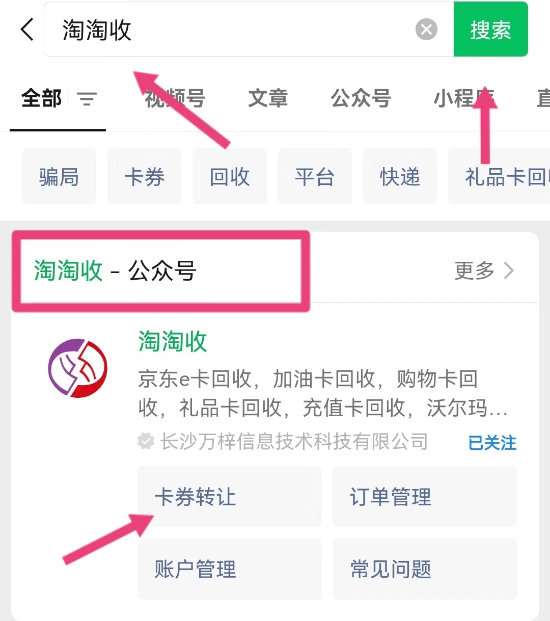 一、微信搜索淘淘收公众号;
