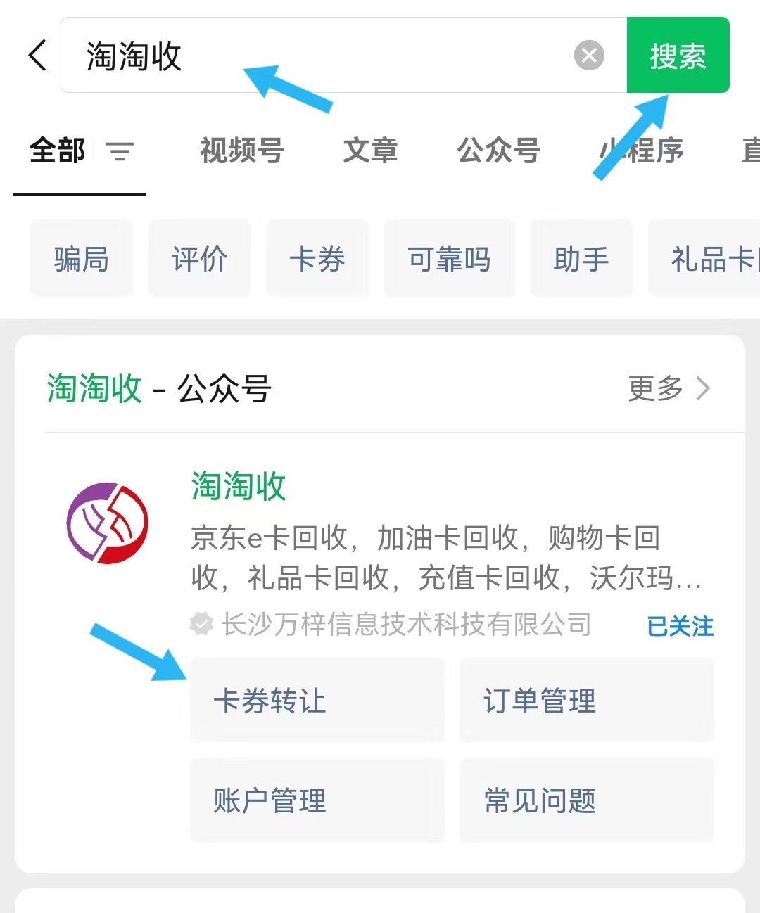 一、微信搜索淘淘收公众号;