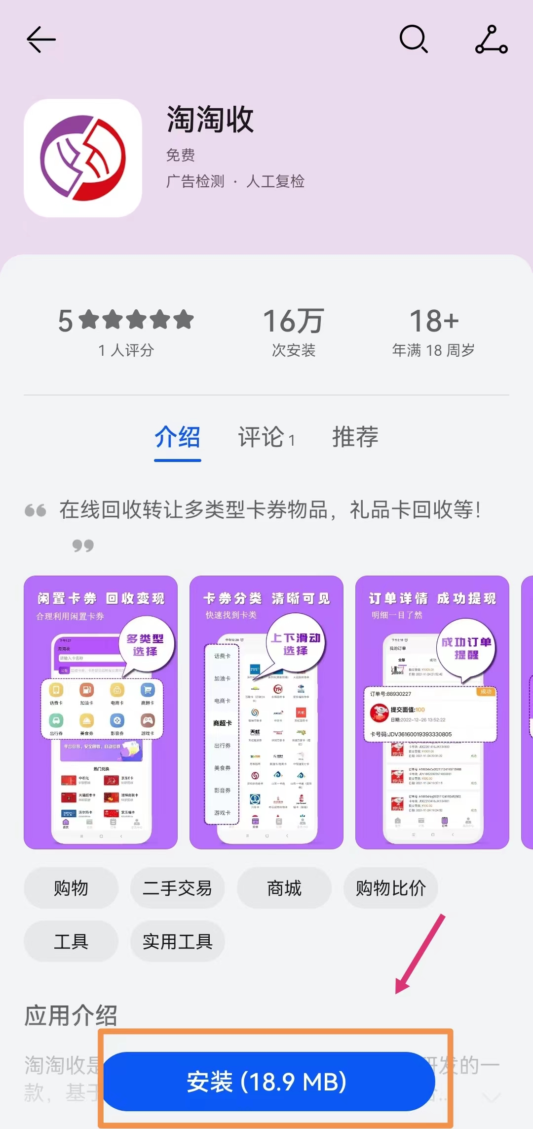 第一步,打开应用商店下载淘淘收;